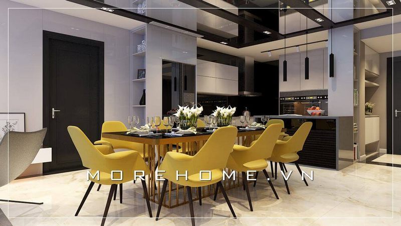Nội thất phòng ăn hiện đại với ghế có tone màu vàng nổi bật sẽ là điểm nhấn cho nhà chung cư.